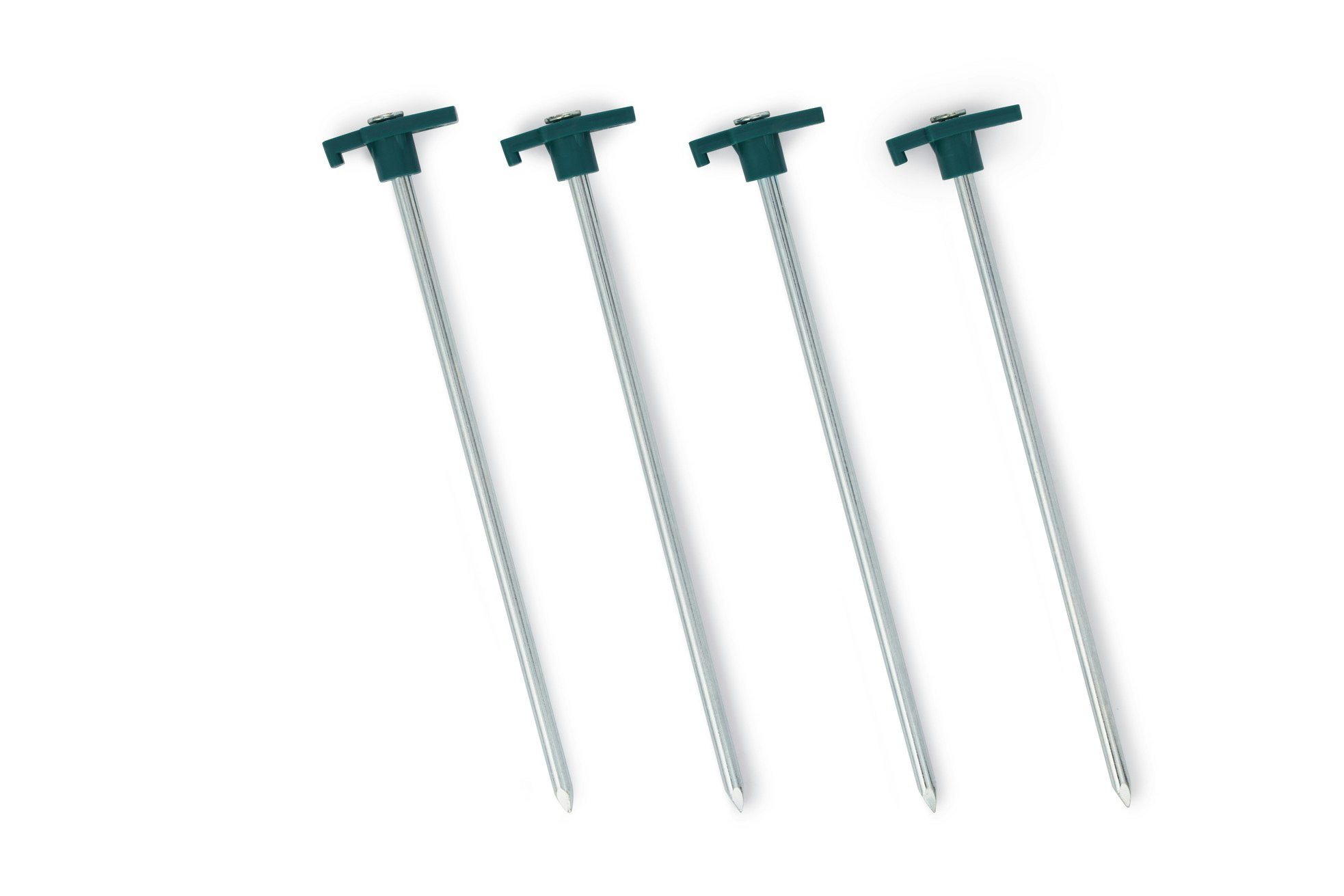 - Durable, high-impact, polypropylene tops and plated steel stakes