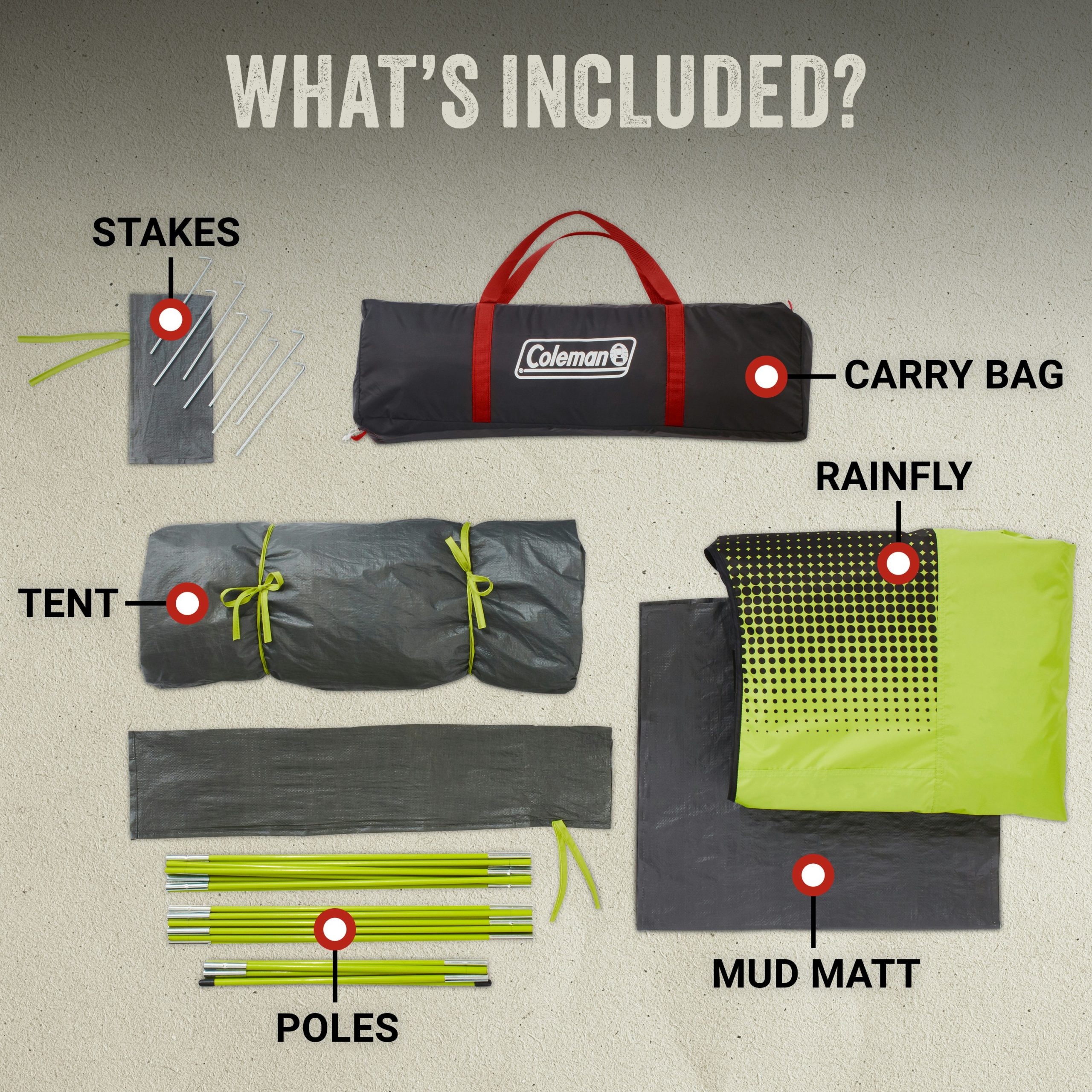 The Coleman® 4-Person Sundome® Dark Room™ Dome Camping Tent blocks 90% of sunlight (vs. a comparable Coleman tent) so you can put the kids to bed early or sleep in past sunrise. It also reduces heat inside the tent for more comfortable rest at any time. Downpour in the forecast? Enjoy superior weather protection thanks to an included rainfly, welded corners, and inverted seams to keep water from getting in.