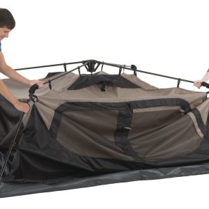 Getting camp set up is easier and faster than ever with the 6-Person Cabin Camping Tent with Instant Setup. Unfold, extend, and secure your tent in 60 seconds to start enjoying the great outdoors. An integrated vented rainfly offers added protection from the rain and improves airflow without the need for extra assembly.
