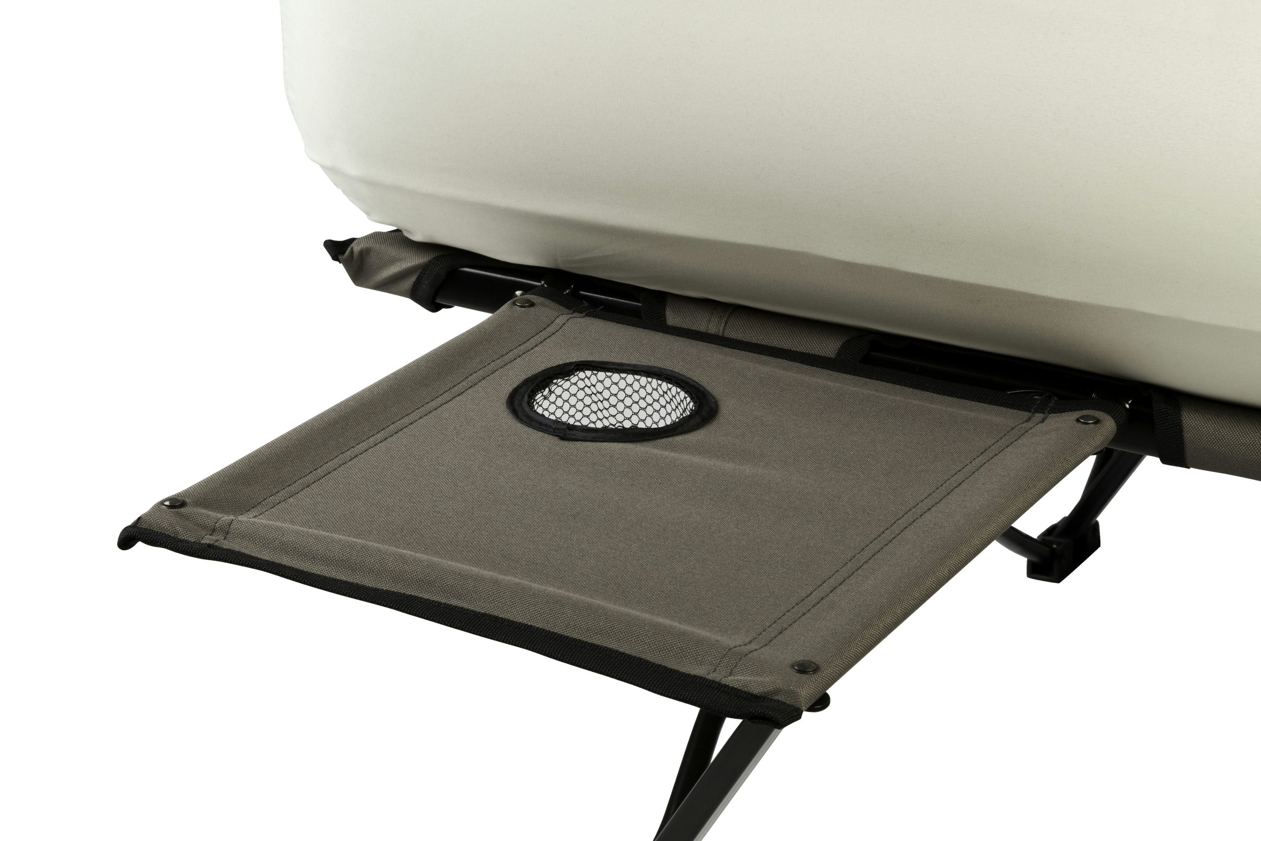 Wherever adventure leads, enjoy the elevated comfort of the Coleman® Camping Cot with Side Tables, Air Mattress & Battery Pump (4 D-cell batteries sold separately). The air bed stays inflated all night thanks to the leak-proof AirTight® system, and its ComfortStrong™ coil construction offers better support. For easy access during the night, place a flashlight or water bottle on the pull-out side tables complete with cup holders.