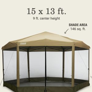 Bring on the bug-free outdoor adventures with the Back Homeâ„¢ screen canopy tents. Lounging with the family in the backyard or hanging with friends in the park? The Back Home 15 x 13 Screen Tent sets up easy using a one-push center hub with OnePeakâ„¢ technology. Plus, we made sure the screen tent fits over a picnic table so you can eat inside the enclosed mesh walls without the pests.