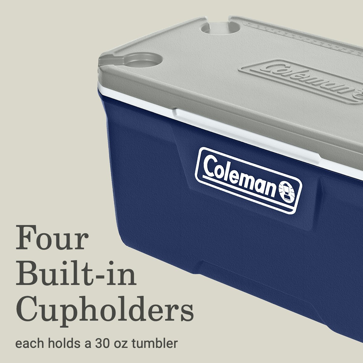 Icy beverages and shared meals fuel the best times outdoors, and the Classic Seriesâ„¢ Cooler is the right choice for the job. This large 120-quart chest holds up to 102 cans and 60 lbs. of ice, enough to refresh the entire gang. Looking for multiday ice retention? TempLock FXâ„¢ insulation in the lid and body has you covered. And, the 316 Series is made with 15% less plastic than comparable Coleman® coolers. Built to last, the Have-A-Seat Lidâ„¢ supports up to 250 lbs., has four cup holders, and is recessed for easy access. Want more? The tethered drainplug resists leaks, the liner resists stains, and our EZ-Clean top makes cleanup simple. Sporty tri-color combo has classic appeal, and there’s even a built-in ruler for measuring the catch of the day. From campsite to worksite, beach to bonfire, soccer field to stadium–Coleman helps you keep your cool.