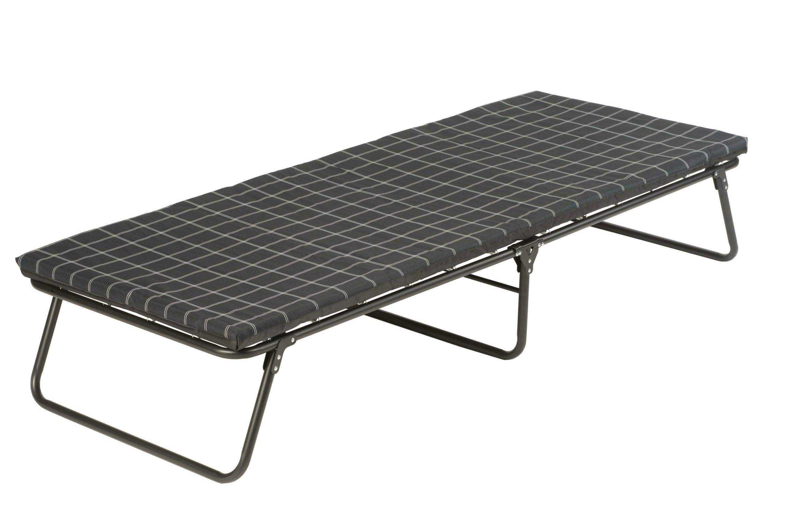 Get the comfortable rest you need before a big day of outdoor fun on the ComfortSmartâ„¢ Camping Cot with Sleeping Pad. You’ll enjoy elevated support thanks to the ComfortSmartâ„¢ coil suspension system as well as comfort comparable to a traditional bed. The cot’s strong steel frame supports up to 300 pounds and fits campers up to 6 feet 6 inches.