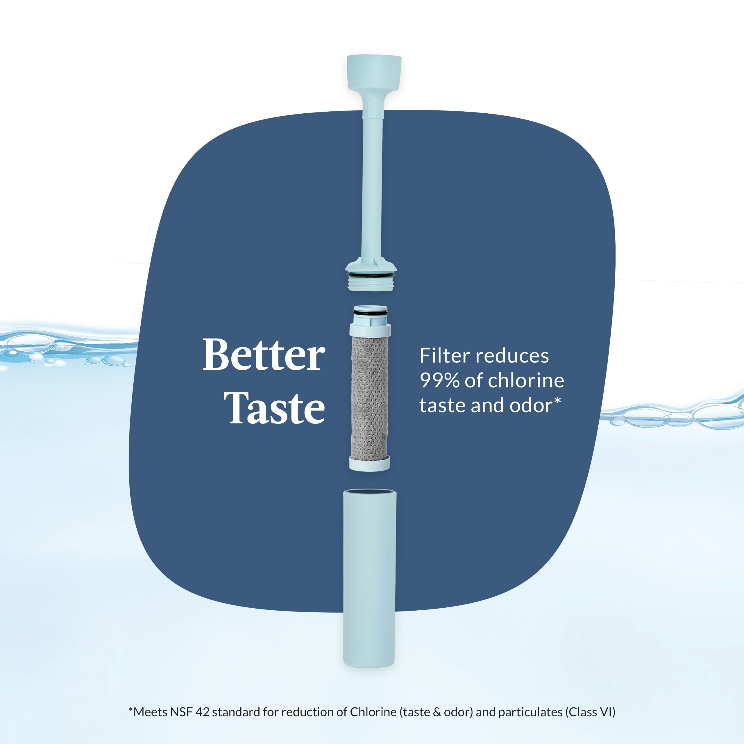 - Carbon fiber filter technology reduces 99% of chlorine taste and odor​ for better-tasting water*