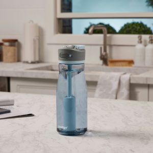 Have better-tasting water anytime and anywhere with the Wells Plastic Filter Water Bottle with AUTOSPOUT® Straw Lid. Made with carbon filter fiber technology that reduces 99% of chlorine taste and odor,* this bottle is perfect for anyone looking to improve the quality of their water. The leakproof design means no spills in your car, on your desk, or wherever you are, and carrying it around is easy thanks to an integrated handle and convenient design that allows for one-handed drinking. When you’re done drinking, click the lid back into place to help protect the bottle from dirt and grime, then lock the lid for extra protection. Bonus? It’s an even better choice if you’re looking for an alternative to single-use plastic—filters last 3-5 months and replace 450 (16.9 fl. oz.) single-use water bottles​.*Meets NSF 42 standard for reduction of Chlorine (taste & odor) and particulates (Class VI)​