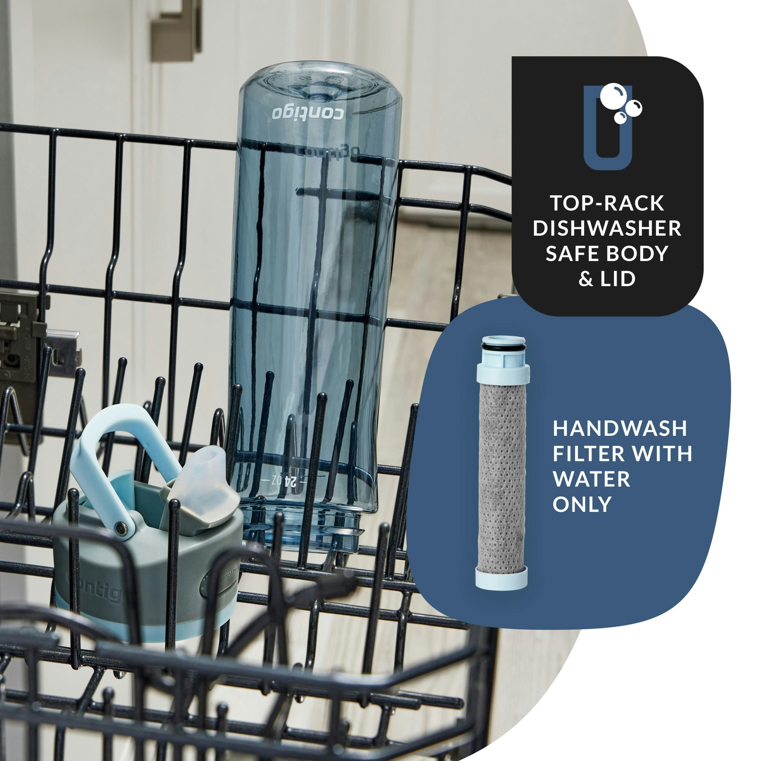 Have better-tasting water anytime and anywhere with the Wells Plastic Filter Water Bottle with AUTOSPOUT Straw Lid and Replacement Filter. Made with carbon fiber filter technology that reduces 99% of chlorine taste and odor,* this bottle is perfect for anyone looking to improve the quality of their water. The leakproof design means no spills in your car, on your desk, or wherever you are, and carrying it around is easy thanks to an integrated handle and convenient design that allows for one-handed drinking. When you’re done drinking, click the lid back into place to help protect the bottle from dirt and grime, then lock the lid for extra protection. Bonus? It’s an even better choice if you’re looking for an alternative to single-use plastic—filters last 3-5 months and replace 450 (16.9 fl. oz.) single-use water bottles​. Plus we’ve even inculded a replacement filter so you’ll have it handy when it’s time to replace. *Meets NSF 42 standard for reduction of Chlorine (taste & odor) and particulates (Class VI)