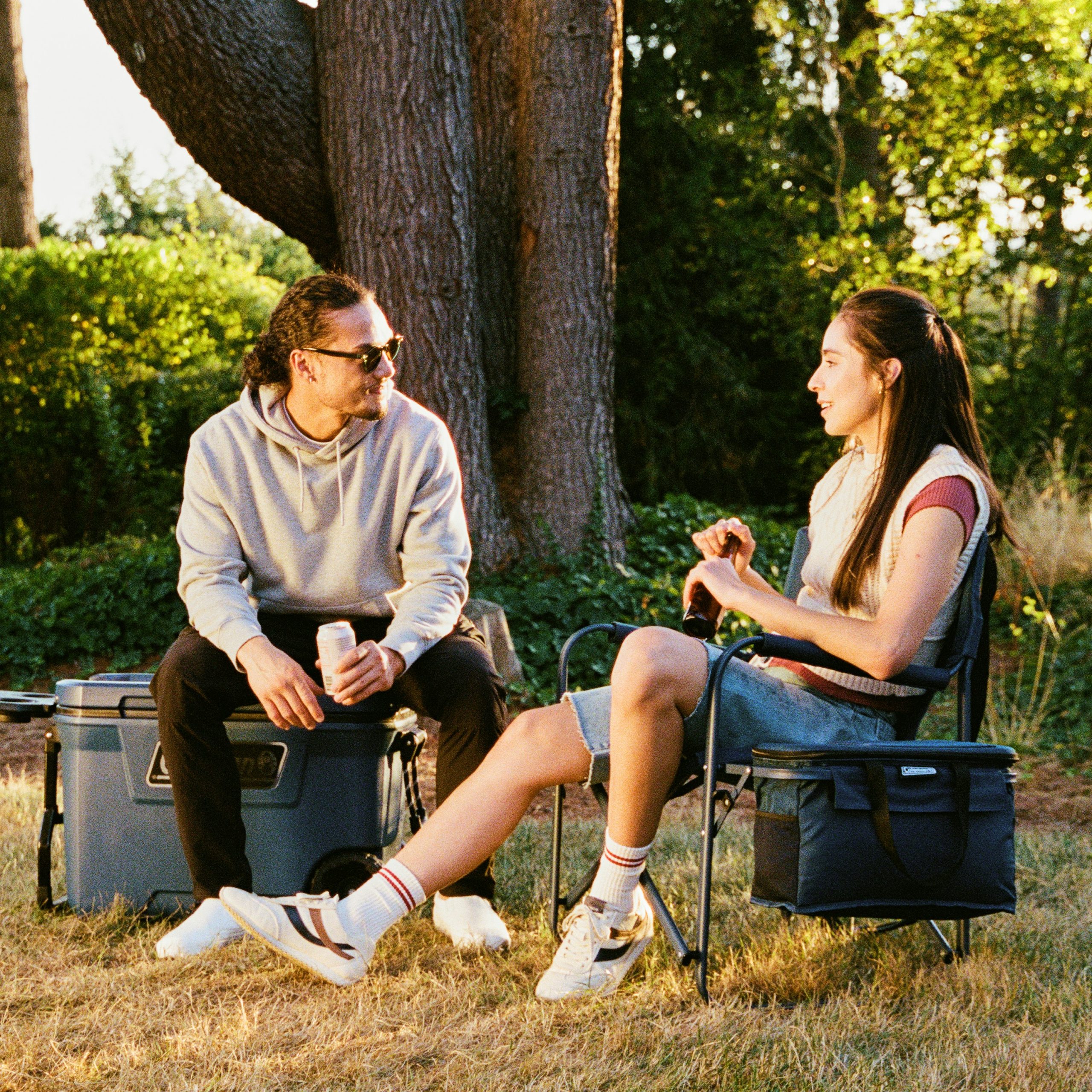 Relax at the beach, campsite, or in the backyard in the Coleman® Flex ‘N Goâ„¢ Chair. Dual pop-out side tables are the ultimate flex: they keep your BBQ plate, drink, or card game close at hand. Enjoy the flexibility of simply folding up your side tables when it’s time to pack up—there’s no need to pack an extra table. And with double the cup holders, you can loan one to the friend sitting next to you at the campfire. The Flex ‘N Go beach chair’s high back and angled armrests, combined with a bucket seat design for lumbar support, keep you comfortable for long days of lounging at the music fest or tailgate.