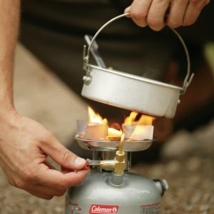 Be sure to bring along the space-saving Coleman® Guide Series® Compact Dual Fuel™ Camping Stove on your next backpacking trip. The one-burner stove delivers up to 10,000 BTUs of cooking power and burns Coleman liquid fuel or unleaded gasoline, so you can take less fuel with you—saving money and precious space in your pack.