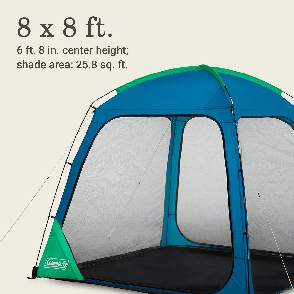 - DIMENSIONS: 8 x 8 ft.; 6 ft. 8 in. center height; shade area: 25.8 sq. ft